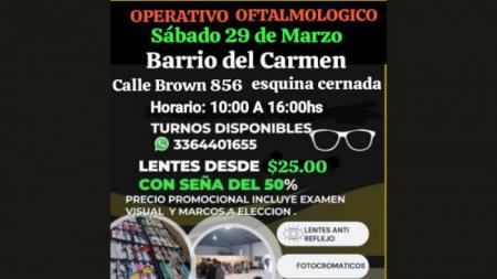 El sábado 29 de marzo, de 10.00 a 16.00 horas, se desarrollará en calle Brown 856, esquina Cernada, las pruebas de test visual gratuitas y trámites de cristales a precios accesibles.