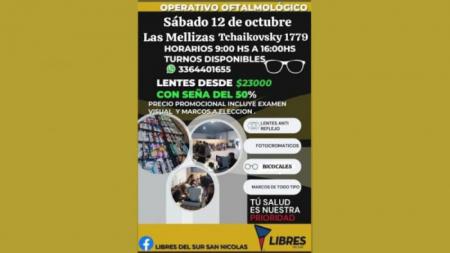 Libres del Sur organiza nuevamente el servicio de venta de anteojos a precios accesibles. Se realizará el sábado 26 de octubre de 9:00 a 16:00 en calle Brown 856, esquina Cernada, en Barrio Del Carmen.