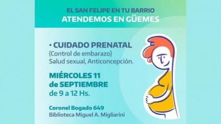 Este viernes 13 de septiembre, personal del Hospital San Felipe realizará controles ginecológicos y test de enfermedades de transmisión sexual en Sarmiento 32. También personal de pediatría se instalará en barrio Moreno.