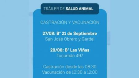 El martes 27 de agosto estará ubicado en San José Obrero y Gardel, en barrio 21 de Septiembre, mientras que el miércoles 28 brindará el servicio en Tucumán 497, barrio Las Viñas.