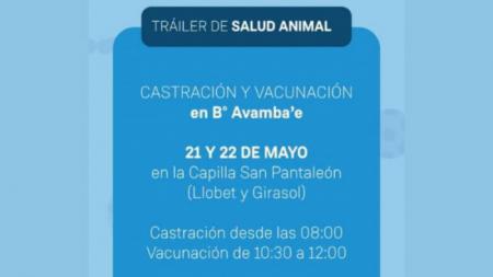 La Municipalidad de San Nicolás llevará a cabo el servicio de castración y vacunación los días martes 21 y miércoles 22 de mayo en la Capilla San Pantaleón, en barrio Avambaé.