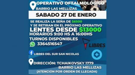 Libres del Sur organiza nuevamente el servicio de venta de anteojos a precios accesibles y la entrega de los tramitados en el operativo anterior. Se realizará el sábado 13 de enero de 9:00 a 16:00 en Zaracondegui y Martínez.