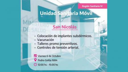 El viernes 6 de octubre arribará la Unidad Sanitaria Móvil zona oeste. Allí se atenderá por orden de llegada de 12 a 15hs en calle Pedro Goitia 1684.
