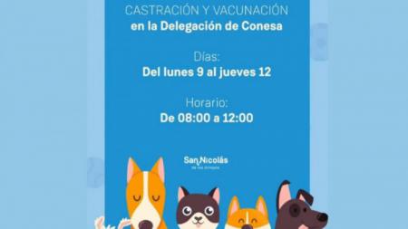 El tráiler de castración y vacunación de la Municipalidad de San Nicolás atenderá desde el lunes 9 al jueves 12 de octubre en la Delegación de Conesa. La atención será gratuita y por orden de llegada en el horario de 8:00 a 12:00.