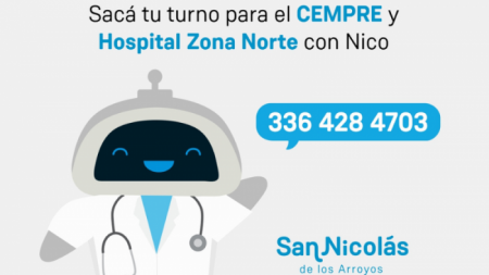 La Municipalidad de San Nicolás recuerda que para obtener turnos para los diferentes centros de salud, deben comunicarse con el asistente virtual Nico enviando un mensaje de WhatsApp con la palabra “Hola” al 3364284703.