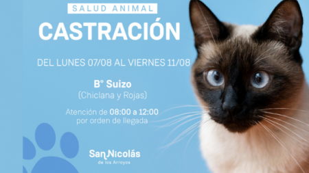 El tráiler de castración de la Municipalidad de San Nicolás estará desde el lunes 7 al viernes 11 de agosto en barrio Suizo (Chiclana y Rojas). La atención será gratuita y por orden de llegada en el horario de 8:00 a 12:00.