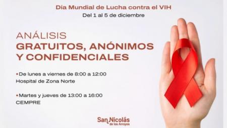 En el marco del Día Mundial de Lucha contra el VIH, que se conmemora cada 1 de diciembre, la Secretaría de Salud y Familia de la Municipalidad de San Nicolás llevará adelante jornadas de testeo gratuito, confidencial y anónimo.