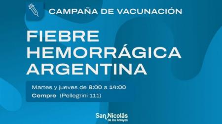 La Municipalidad de San Nicolás recuerda que se encuentra vigente la campaña de vacunación contra la Fiebre Hemorrágica Argentina.
