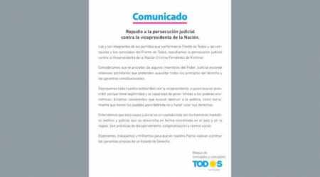 Concejales del Frente de Todos manifestaron que "el proceder de algunos miembros del Poder Judicial esconde intereses partidarios que pretenden avasallar todos los principios del derecho y las garantías constitucionales".