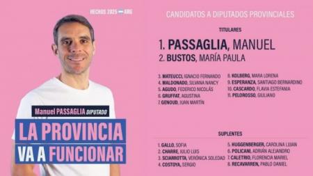 Manuel Passaglia es quien encabezará la lista a diputados provinciales por Hechos, su nuevo espacio político. Le siguen Paula Bustos, Ignacio Mateucci, Silvana Maldonado, Federico Agudo, Agustina Gruffat y Juan Martín Genoud.