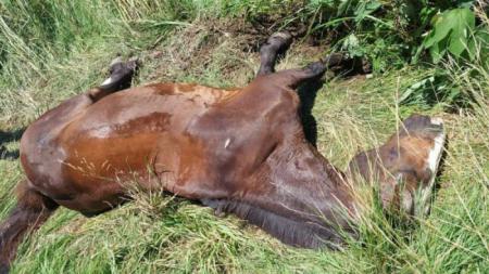 Este lunes en horas de la mañana, hallaron en Av. Savio, entre la entrada de barrio Somisa y Arroyo Ramallo, un caballo atropellado que fue abandonado en medio del asfalto.
