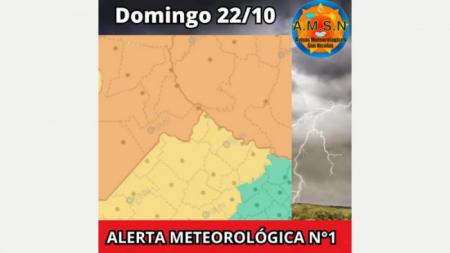 El Servicio Meteorológico Nacional emitió una alerta meteorológica amarilla por lluvias y tormentas de variada intensidad para la madrugada, mañana y tarde del domingo 22/10.