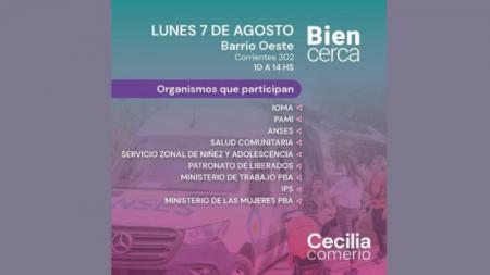 En el marco del Programa Bien Cerca, distintos organismos provinciales y nacionales atenderán consultas y realizarán diversos trámites de vecinos y vecinas en diferentes puntos de la ciudad los días lunes, martes, miércoles y jueves.