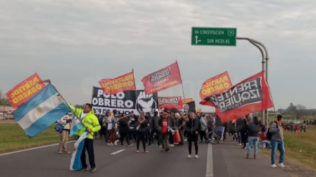En San Nicolás, los integrantes del Polo Obrero se manifiestan cortando la Ruta 9 a la altura del Parador, carril Buenos Aires- Rosario en el marco de una "Jornada Nacional de Lucha".