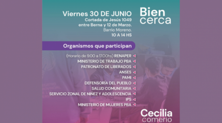 En el marco del Programa Bien Cerca, distintos organismos provinciales y nacionales atenderán consultas y realizarán diversos trámites de vecinos de la zona. Este viernes 30, el Registro de la Personas iniciará trámites de DNI.