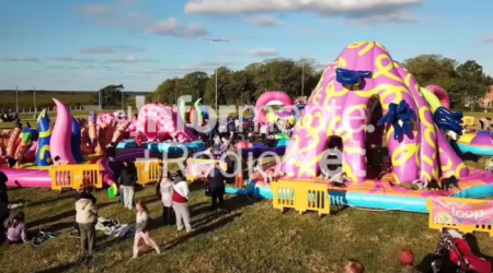 A partir de las 14:00 y hasta las 18:00, el sábado y domingo, el gran parque inflable estará habilitado, junto con un Punto Literario y un Punto Deportivo donde los chicos podrán hacer diversas actividades.