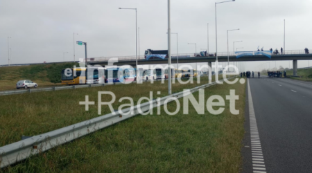 El gremio de choferes de colectivos realiza un corte de tránsito en autopista a la altura del acceso Dámaso Valdés. Realizan una asamblea con presencia en rutas por aumento salarial en distintas provincias.