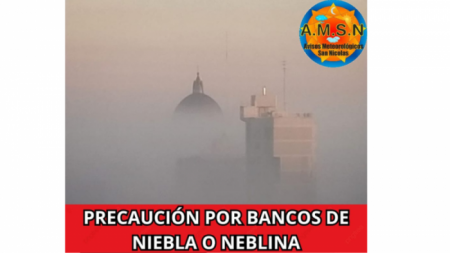Se esperan bancos de niebla o neblina entre la noche del martes y la madrugada y las primeras horas de la mañana del miércoles. Se recomienda a los automovilistas tomar precaución al circular para evitar accidentes.