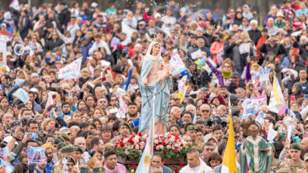 Se conmemora el 42 aniversario de la aparición de María del Rosario de San Nicolás y los fieles lo celebran. Confluyen desde diferentes puntos de la ciudad peregrinando desde la tarde para comenzar con la vigilia.