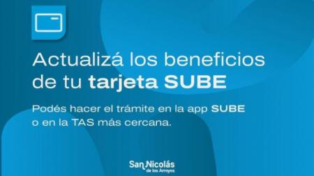 Tener la Tarjeta SUBE actualizada garantiza la vigencia de los beneficios. Es por eso que la Municipalidad de San Nicolás informa que en los próximos días todas aquellas personas que cuentan con estos beneficios
