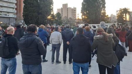 Prestadores, familias, acompañantes terapéuticos, pacientes, talleristas y transportistas de San Nicolás se manifestaron este martes en la plaza Mitre en oposición al veto del presidente a la Ley de Emergencia en Discapacidad.