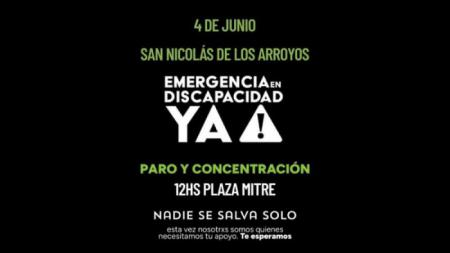 El próximo miércoles 4 de junio convocaron a un paro y concentración visibilizando la lucha por la Ley de Emergencia en Discapacidad tratada en diputados. La manifestación se llevará a cabo a las 12:00 hs en la Plaza Mitre.
