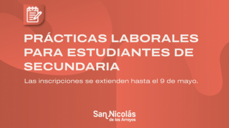 La Municipalidad de San Nicolás extendió hasta el viernes 9 de mayo el período de inscripción de las Prácticas Laborales 2025, por lo que aquellos interesados en participar de este programa tendrán tiempo hasta ese día.