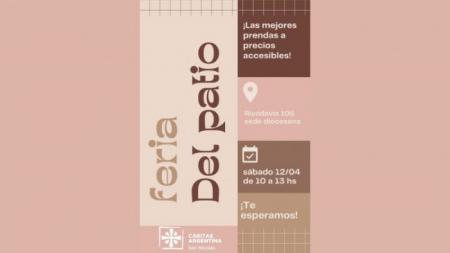 El sábado 12 de abril, de 10 a 13 hs, Cáritas San Nicolás realizará la feria del patio en Rivadavia 106, sede diocesana, donde ofrecerán prendas de calidad con los mejores precios.