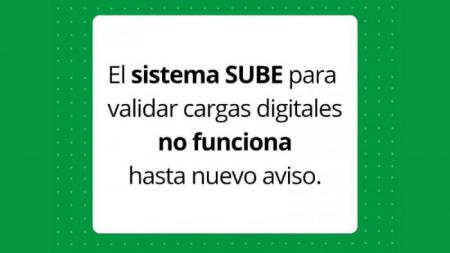 La empresa Vercelli Hnos. informó que el sistema SUBE para validar cargas digitales no funciona hasta nuevo aviso.