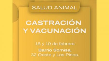 Salud Animal informa que el próximo 18 y 19 de febrero llega castración de perros y gatos y vacunación a Barrio Somisa, en calle 32 Oeste y Los Pinos.