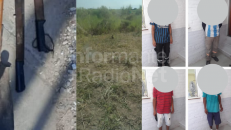 Entre calles Piñero, Islas Malvinas, Moreno y Antártida personal del Comando de Patrullas observaron un grupo de personas en el lugar, delimitando parcelas con palos.