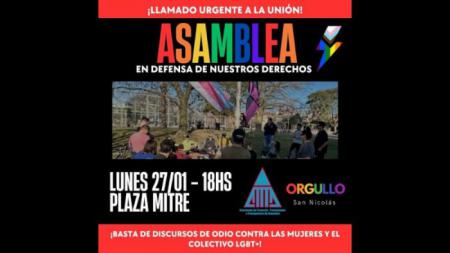 Este lunes 27 de enero, a las 18:00 hs, se realizará una asamblea en la plaza Mitre en defensa de los derechos de la comunidad LGBT+.