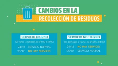 La Municipalidad de San Nicolás informa que, debido al feriado del 25 de diciembre, habrá cambios en la frecuencia de la recolección de residuos sólidos urbanos.