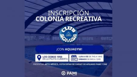 PAMI San Nicolás informa que ya se encuentran abiertas las inscripciones a la Colonia Recreativa con aquagym en el Club Somisa, en Los Ceibos 1950.