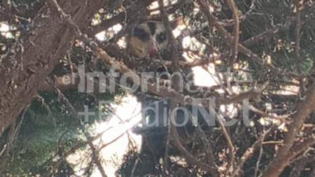 El animal fue visto este lunes trepado sobre un árbol de la Plaza Mitre. El personal de la Policía Local se hizo presente, pero debido a la gran cantidad de personas, decidieron no cortar la rama, por lo que el animal sigue allí.