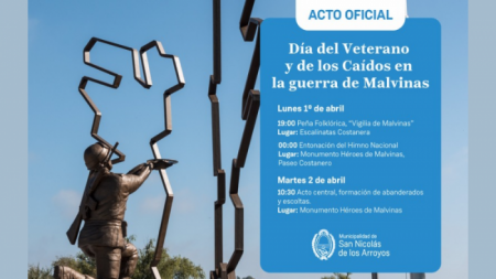 La Municipalidad de San Nicolás y el Centro de Veteranos y Familiares de los Héroes Caídos en Malvinas invitan a participar de las actividades en conmemoración del 42º aniversario de la Gesta de Recuperación de las Islas Malvinas.