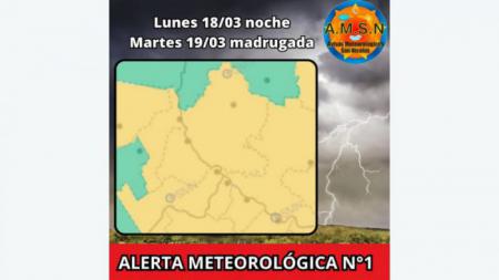 El Servicio Meteorológico Nacional emitió una alerta amarilla por lluvias y tormentas para la noche de este lunes y la madrugada del martes.