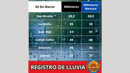 Avisos Meteorológicos San Nicolás informa que el agua caída durante la tarde del sábado 2 de marzo en San Nicolás fue de 28,2.