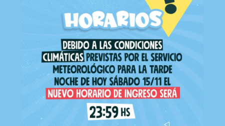 Por las condiciones climáticas previstas para la tarde/noche de hoy, el nuevo horario de ingreso a la Fiesta de Disfraces San Nicolás 2025 será a las 23:59 hs.