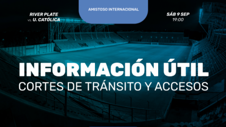 River Plate y Universidad Católica de Chile se enfrentarán en el Estadio San Nicolás el próximo sábado 9 de septiembre a las 18:00 horas. El encuentro será televisado de manera exclusiva por la plataforma STAR+.