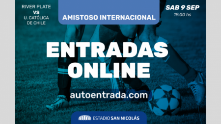 A partir de las 12:00 de este viernes 8 de septiembre en el Autódromo San Nicolás comenzará la venta de remanentes de entradas para el partido entre River Plate y Universidad Católica de Chile que se disputará este sábado a las 18:00 en el Estadio de nuestra ciudad.
