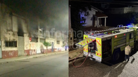 Una dotación de Bomberos se hizo presente en España y Almafuerte, donde se produjo un incendio en galpones de la cuadra, donde antes funcionaba una fábrica y depósito textil.