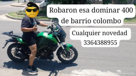 Robaron una motocicleta Dominar 400cc del interior de una vivienda ubicada en calle Andrés del Pozo, de barrio Colombo. El robo se produjo alrededor de las 18:00 hs. del sábado.