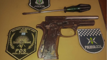 Personal de Policía Local detuvo en Juan M.de Rosas y León Guruciaga a un menor de 13 años y le incautó una réplica de plástico de arma de fuego y un destornillador.