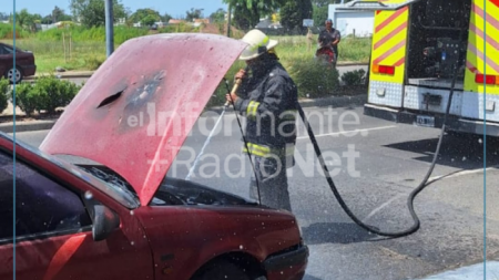 Un automóvil Renault 19 con GNC, ardió en llamas cuando circulaba por Pte Perón y Esquiú.