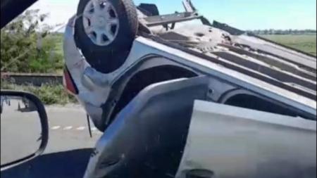 Un siniestro vial se produjo a la altura del kilómetro 148 de la Ruta 9, en jurisdicción de Baradero. Un automóvil Renault Sandero en el que circulaban cuatro personas terminó volcando.