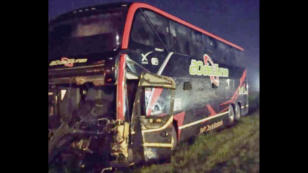 Un colectivo marca Volvo, perteneciente a la empresa 20 de Junio, que transitaba por el km 221 de Ruta 9, impactó contra un caballo.