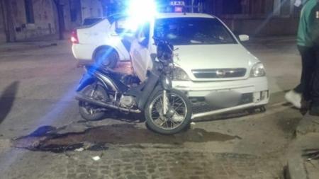 Un accidente de tránsito protagonizado por una moto y un auto fue registrado este sábado en calle Echeverría y Nación.