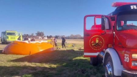 Personal de Bomberos de San Nicolás y Ramallo trabajaron en el abastecimiento de aviones hidrantes empleados para sofocar los incendios en las islas Lechiguanas, ubicadas frente a Villa Constitución.