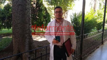 Diario El informante accedió en exclusiva a un video donde se lo ve al sospechoso de ser responsable de la muerte de tres familiares, en los pasillos del Hospital San Felipe, mientras llevan en camilla a su madre.